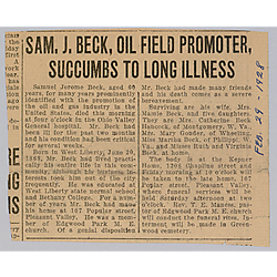 The Beck Family of Ohio County, West Virginia, are descendants of Lemuel Beck. One of the descendants, Samuel Beck, received a commission as first lieutenant of Company S, First Regional, West Virginia National Guard on November 30, 1898. Samuel Beck was the administrator of the T. B. McFarland Estate.