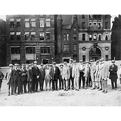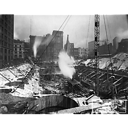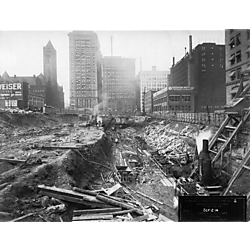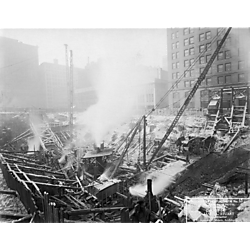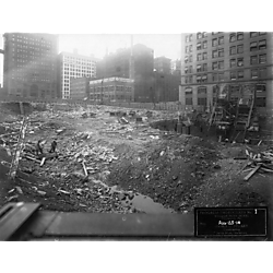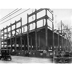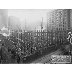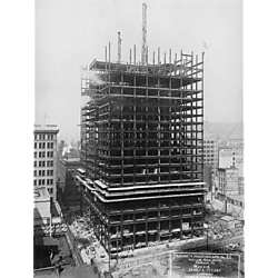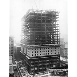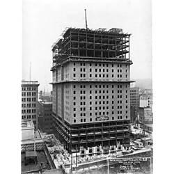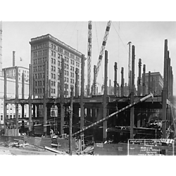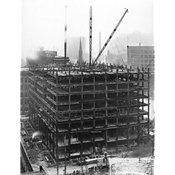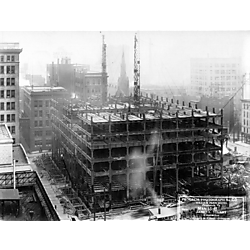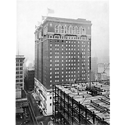 Within this collection of construction photographs, images of well-known buildings are also visible, most notably the Allegheny County Court House, the Carnegie Building, the Frick Building, and Kauffman's Department Store. By March 1916, construction of the Union Arcade Building is visible in the foreground of the nearly completed hotel.