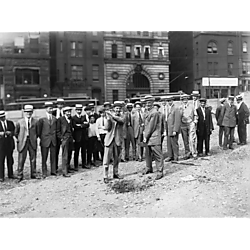 The collection is held by the Archives Service Center (ASC) at the University of Pittsburgh. The William Penn Hotel album contains 28 linen-backed photographs in chronological order bound in limb red-leather. Two photographs document the groundbreaking ceremony held on July 7, 1914. Twelve photographs document the excavation process. Fourteen photographs document the actual construction of the steel-framed hotel. The photographs in the album were taken every two weeks to show construction progress. The last photograph in the album is dated March 11, 1916.