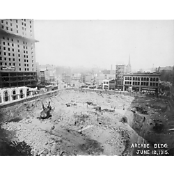 The collection is held by the Archives Service Center (ASC) at the University of Pittsburgh. The Union Arcade Building Photographs contain all 85 views of the construction of this building in Downtown, Pittsburgh taken between June 16, 1915 and October 26, 1916 by the Photo Products Company. The images depict the construction progress of the building and the workers who erected it. The photographs also contain evidence of the impact this building made in the Downtown area by observing the change in the surrounding landscape during this brief time.