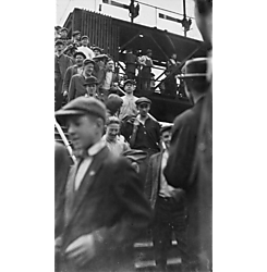 These marches made their way to Swissvale as the ACIU Local No. 2, Union Switch & Signal Plant, voted to strike. On Friday, June 12th, US&S officially joined the walkout when over 1,000 workers left the plant at lunchtime to be greeted by an additional 2,000 parading strikers from the East Pittsburgh plants. Women played a vital role in the marches and their participation in these events is well represented in the album. It was a festive event on a gorgeous late spring day. Marching bands headed the parade, American flags flew, and sympathetic shop owners provided refreshments and food to the sun-soaked demonstrators. Several hundred US&S strikers joined the parade while the rest formed pickets surrounding the plant on Edgewood and Braddock Avenues. Picketing continued in this fashion outside of Union Switch & Signal for the duration of the strike while newspapers reported that at least one other parade took place on June 16th.