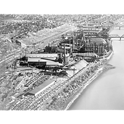 The William J. Gaughan online collection contains images of the Homestead Steel Works from 1886 through 1970 showing plant and community activity, machinery, workers, strikes, safety and accident concerns, and social activities. Employees are depicted on the job and participating in their family and community life. These images also contain images of World War II production, morale campaigns in the mill, and female employees during the war.