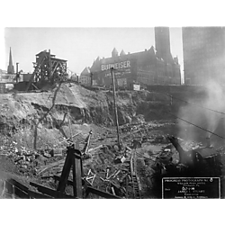 Within this collection of construction photographs, images of well-known buildings are also visible, most notably the Allegheny County Court House, the Carnegie Building, the Frick Building, and Kauffman's Department Store. By March 1916, construction of the Union Arcade Building is visible in the foreground of the nearly completed hotel.