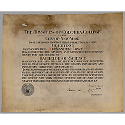 This collection consists of 14 of 16 patents that Dr. Lowy secured for his research, some memorabilia from his college years, and materials related to the dedication of the Alexander Lowy Memorial Seminar Room in Langley Hall on May 25, 1959.