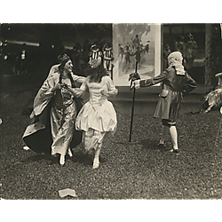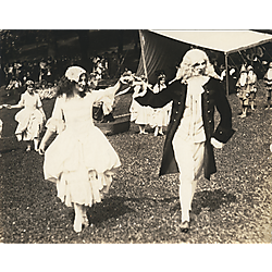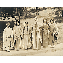 Digitized images from the Chatham University May Day Collection depict festival activities occurring on campus in connection with May Day celebrations. Images document theatrical, musical, and dance performances, as well as elaborate costumes, set decorations, and staging. Community engagement in the May Day celebrations, illustrated by large crowd and audience scenes, is also notable.