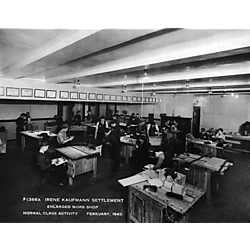 In 1907, Mr. and Mrs. Henry Kaufmann, proprietors of Kaufmann’s Department Store in downtown Pittsburgh, made a donation in memory of their daughter, Irene Kaufmann, to construct a larger building on the site of 1835 Centre Avenue, to be known as the Irene Kaufmann Settlement. The Settlement was non-sectarian and continued to aid the Hill District community until 1959, when it moved to Squirrel Hill and joined forces with the Young Men’s Hebrew Association and the Young Women’s Hebrew Association to become Y-IKS. In 1972, the Irene Kaufmann Settlement changed its name to the Jewish Community Center.